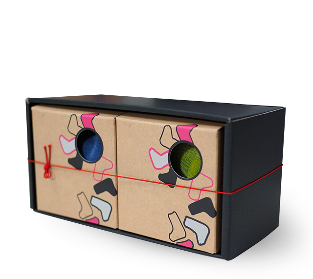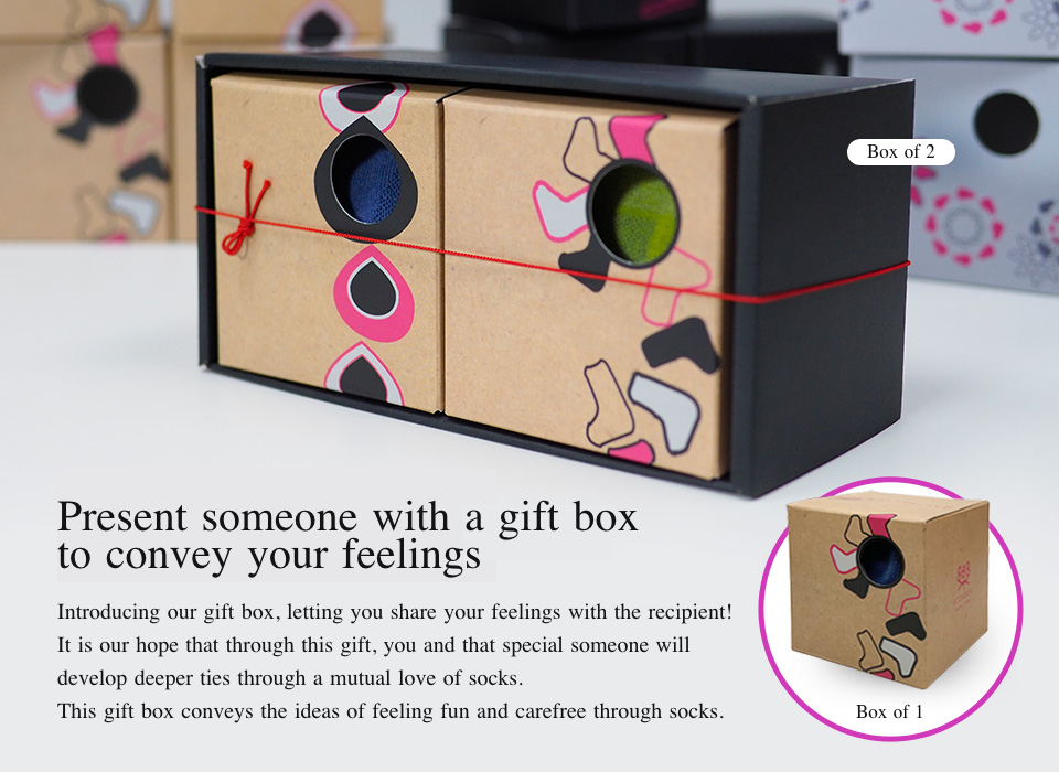 This gift box conveys the ideas of feeling fun and carefree through socks.